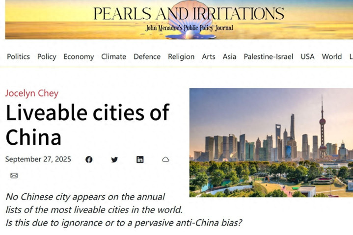 近日,澳大利亚“珍珠与刺激”网站发表了澳大利亚国际事务研究所研究员、悉尼大学客座教授乔斯林·谢伊的文章《中国的宜居城市》。文章提出疑问,在西方机构进行的全球宜居城市年度榜单上,为何没有中国城市?